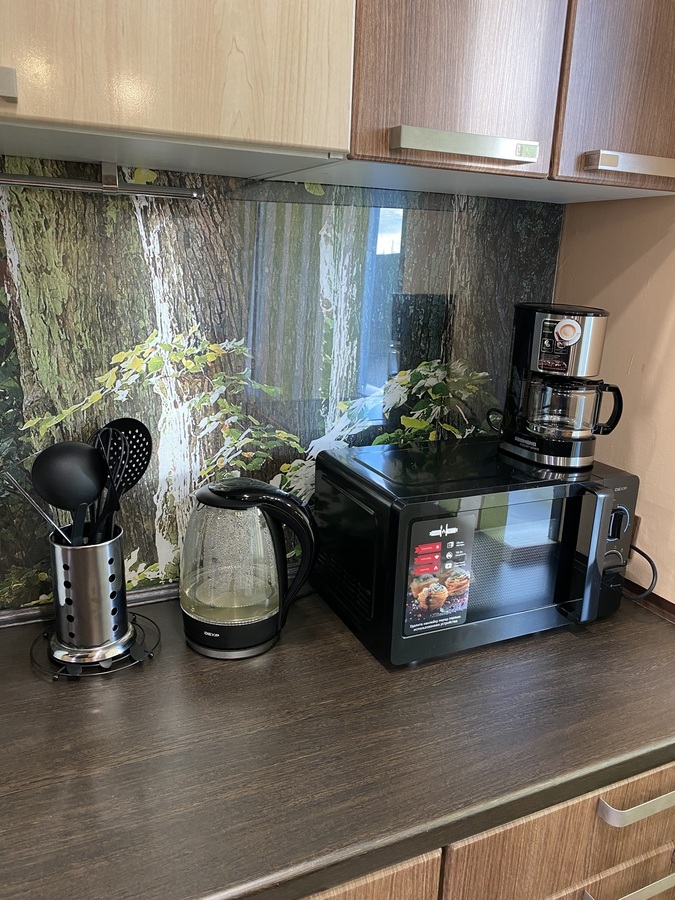 - посуда + вся необходимая до мелочей кухонная утварь;