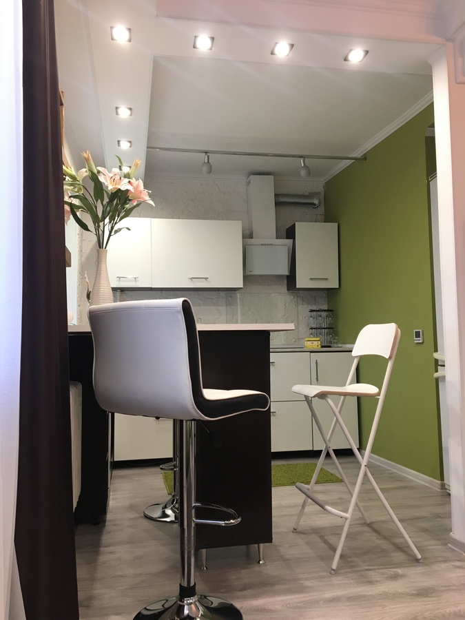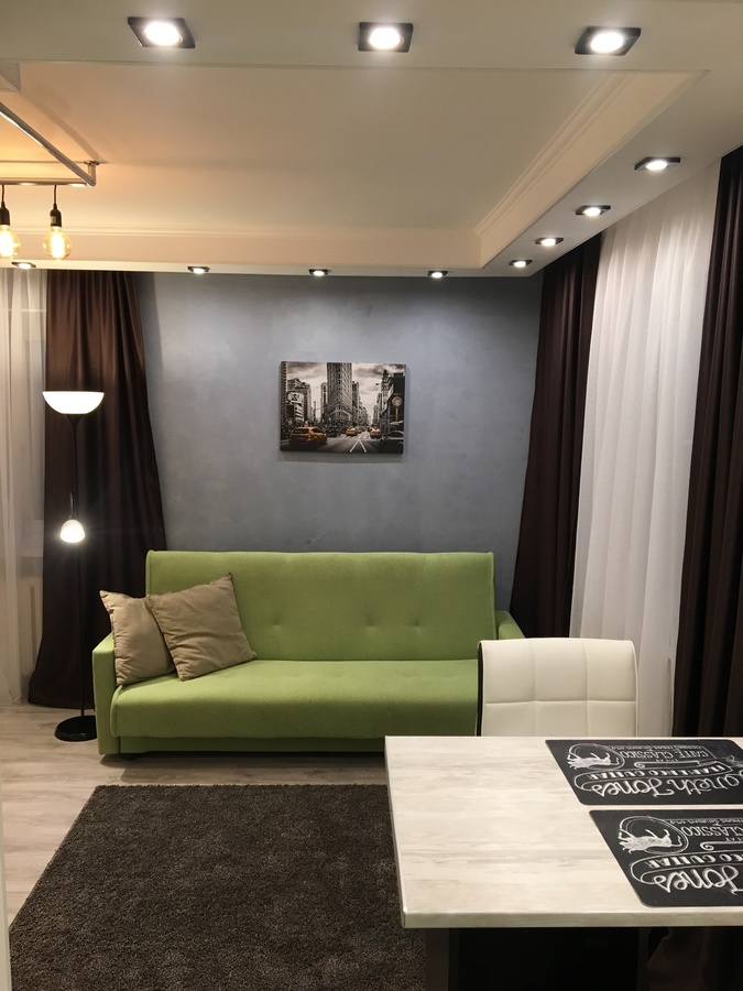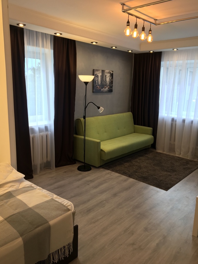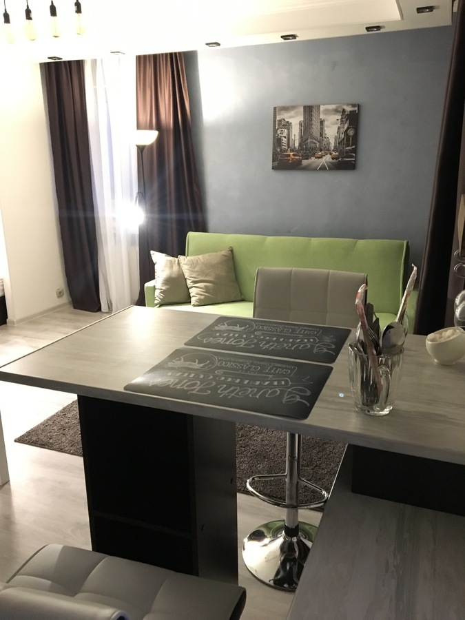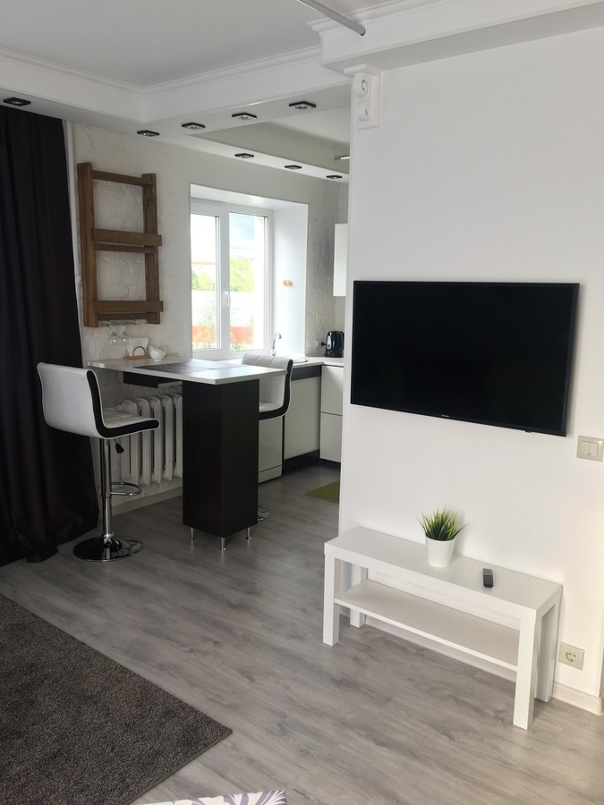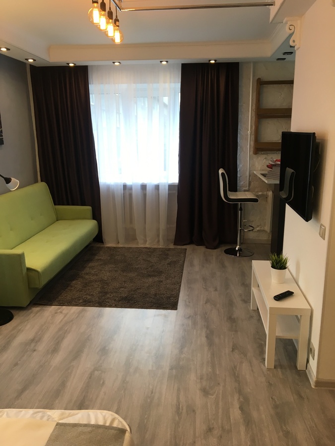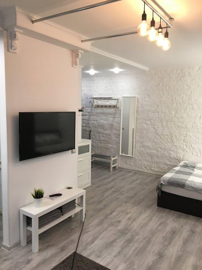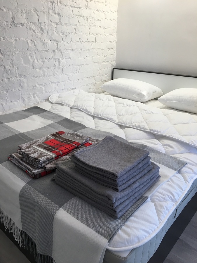 Новая квартира-студия находится в центре города. Квартира сдаётся в идеальном состоянии, чистая, светлая, тёплая с новым современным дизайнерским ремонтом, новой техникой и всем необходимым для комфортного проживания. Удобная, уютная кровать с новым ортопедическим матрасом. Качественная уборка, чистое постельное белье, комплект махровых полотенец, чай, кофе растворимый, кофе заварной, сахар, соль, средства гигиены: гель для душа, жидкое мыло, ватные палочки, ватные диски, влажная туалетная бумага, влажные салфетки и многие другие приятные и необходимые мелочи.